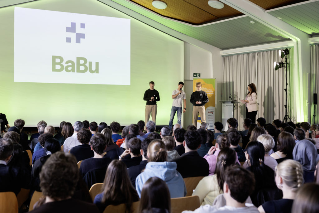 Die Lernenden präsentierten ihre Projekte überzeugend und beantworteten die Fragen der Jurys souverän. Die Ideen waren kreativ, anwendungsnah und bezogen sich auf konkrete Herausforderungen aus dem Alltag. Wie aus einer Idee ein konkretes Produkt entstehen kann, zeigte das Vorjahresprojekt ReBag mit bereits über 150 verkauften Taschen und wertvollen Praxiserfahrungen. Ergänzt wurde das Programm durch Startup-Gründer Janik Meier (Findmee), der offen über seinen Weg, Hürden und die Bedeutung von Durchhaltevermögen sprach.