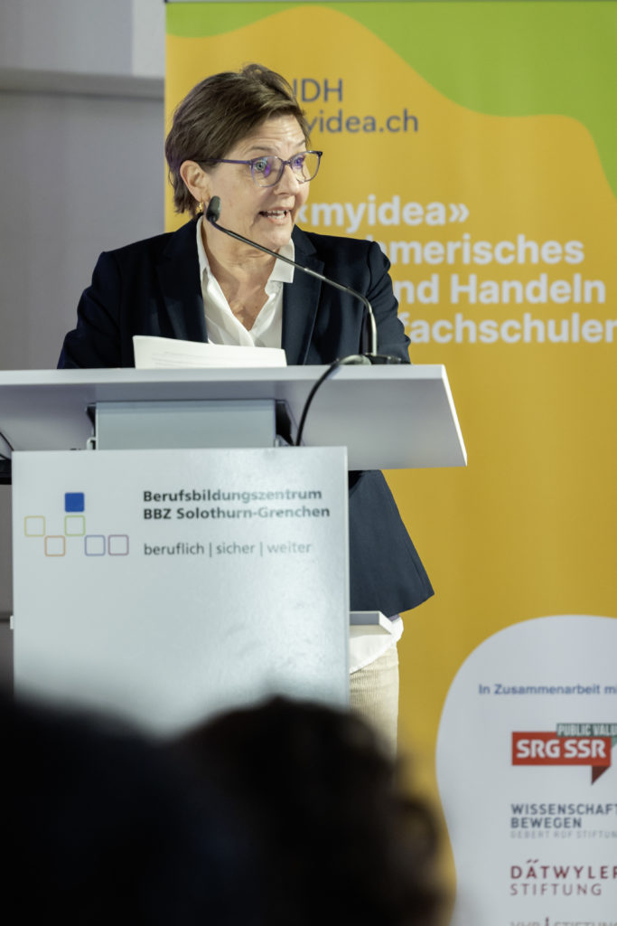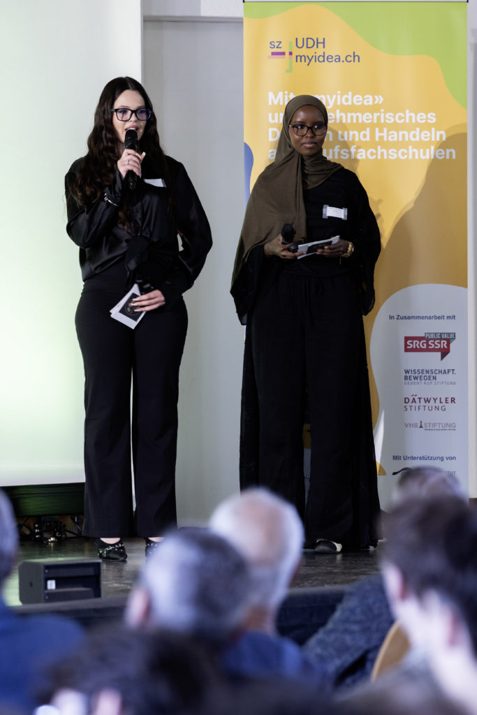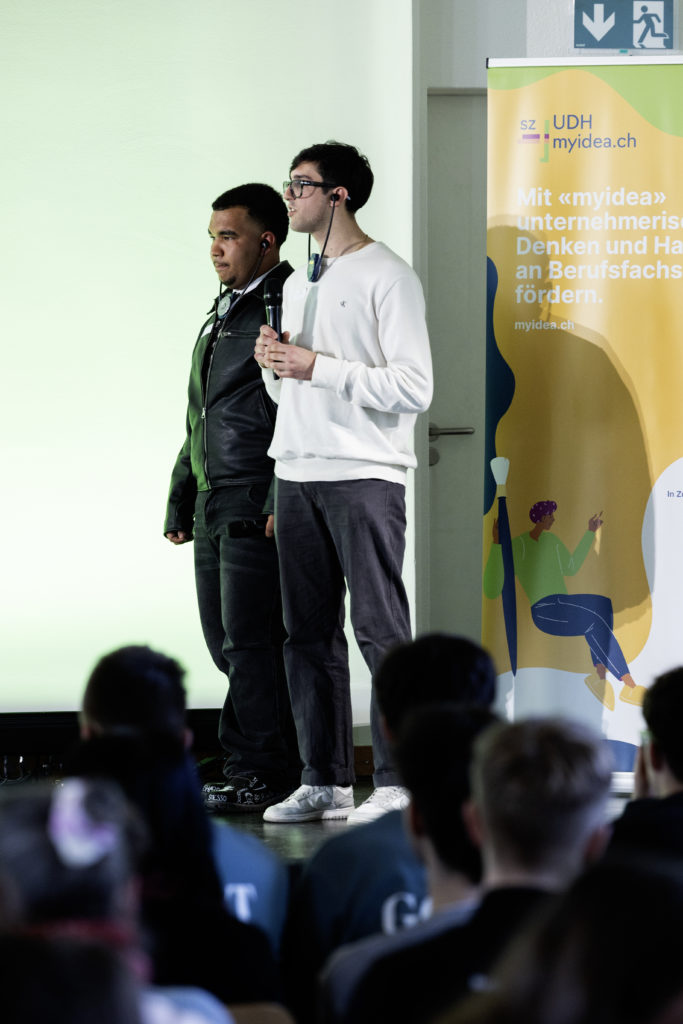 Der Live-Event zur diesjährigen «myidea-Challenge» fand am Dienstag, 24. März 2026, am Berufsbildungszentrum BBZ Solothurn-Grenchen statt. Durch das Programm führten Bernhard Beutler (Direktor des BBZ Solothurn-Grenchen) und Regula Buob (Startup-Expertin und Board Member des BBZ Solothurn-Grenchen).