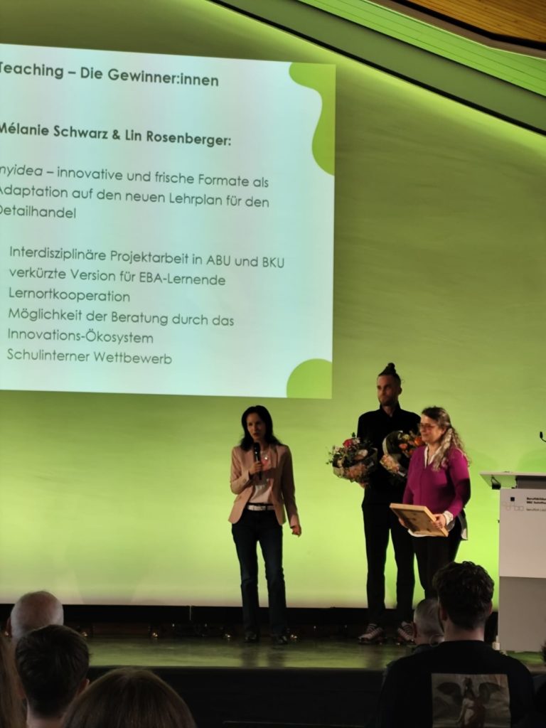 Ein weiterer Höhepunkt war die Verleihung des «Fritz Oser Award for Visionary Teaching» an Mélanie Schwarz und Lin Rosenberger, welcher feierlich von Prof. Dr. Eveline Gutzwiller-Helfenfinger (szUDH) überreicht wurde. Dies unterstreicht die zentrale Rolle engagierter Lehrpersonen bei der Förderung unternehmerischer Kompetenzen im Rahmen des neuen Lehrplans für den Detailhandel. Beim anschliessenden Networking-Apéro wurde weiterdiskutiert, vernetzt und inspiriert. Fazit: viele Ideen, viel Energie und ein klarer Blick in eine unternehmerische Zukunft.