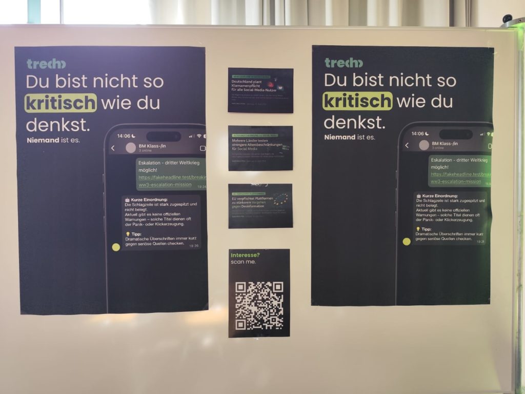 In der Kategorie «Fight Fake News» gewann trecho (BFS Baden) mit einem WhatsApp-Bot zur Erkennung problematischer Inhalte, umgesetzt von Jana Sophia Störi und Elina von Flüe. Es folgten «Grosse Fragen, kleine Geschichten» (BBZ Solothurn-Grenchen) von Alexandra Koch und Mona Sue Büttiker sowie TOP OR FLOP (GIBS Solothurn) mit Abdurrahman Efe Özdemir und Imzan Bajrami.